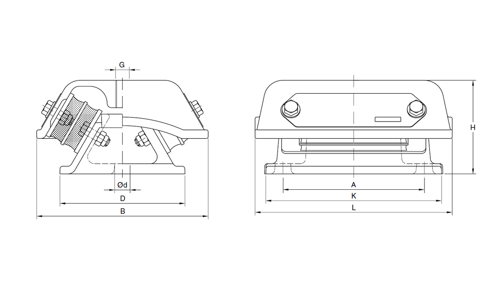 Equally suited for isolating the vibrations from low-speed machines and equipment, the type BA and type Double U-Shear are designed to protect sensitive and lightweight units from external shock vibrations. Both mountings utilize bonded rubber in shear to permit high deflection and provide excellent isolation of low frequencies. The BA shear is a half section, suitable for very light loads