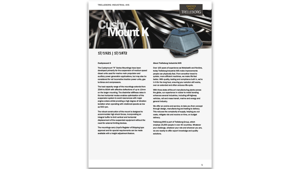 了解更多特瑞堡Cushymount K解决方案相关信息