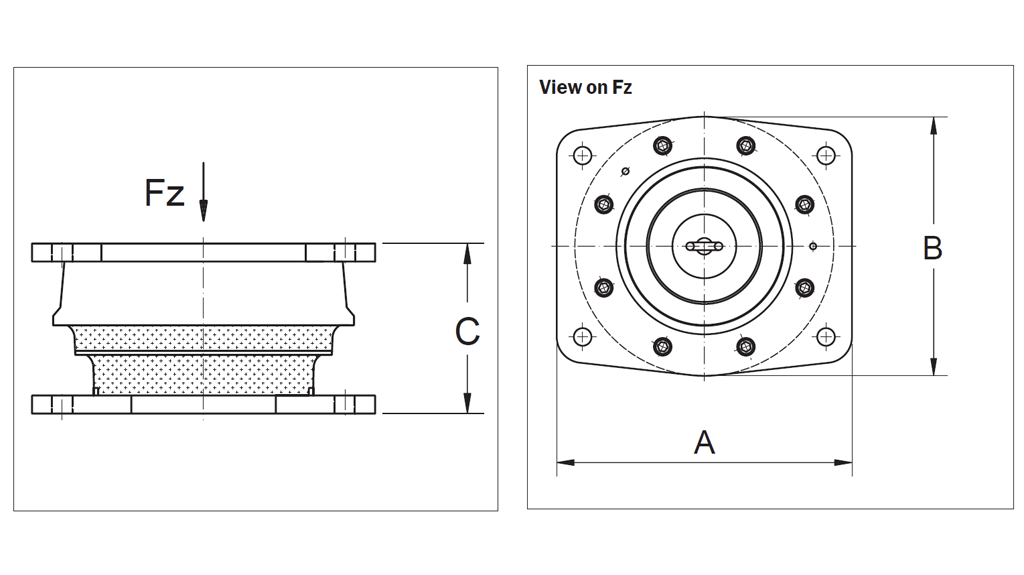 橡胶硬度 | 载荷 Fz kN | 静刚度 kN/mm |