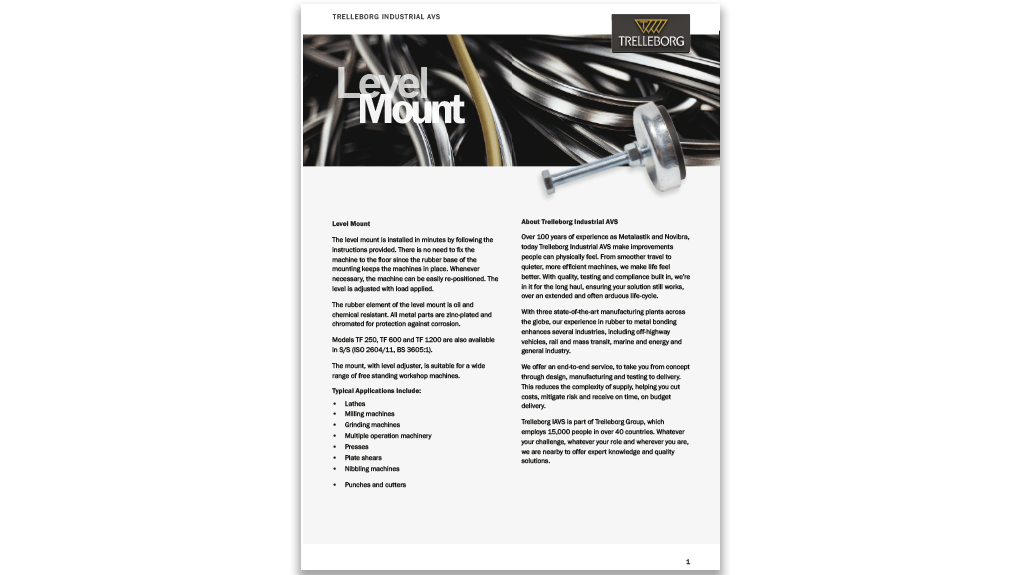 调平底座的橡胶元件具有耐油脂和化学品的性能。所有金属零件均为镀锌和经过铬酸盐处理以抵抗腐蚀。