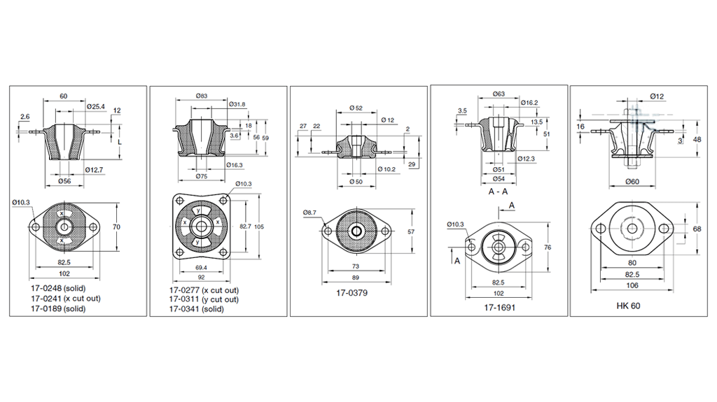 Equally suited for isolating the vibrations from low-speed machines and equipment, the type BA and type Double U-Shear are designed to protect sensitive and lightweight units from external shock vibrations. Both mountings utilize bonded rubber in shear to permit high deflection and provide excellent isolation of low frequencies. The BA shear is a half section, suitable for very light loads