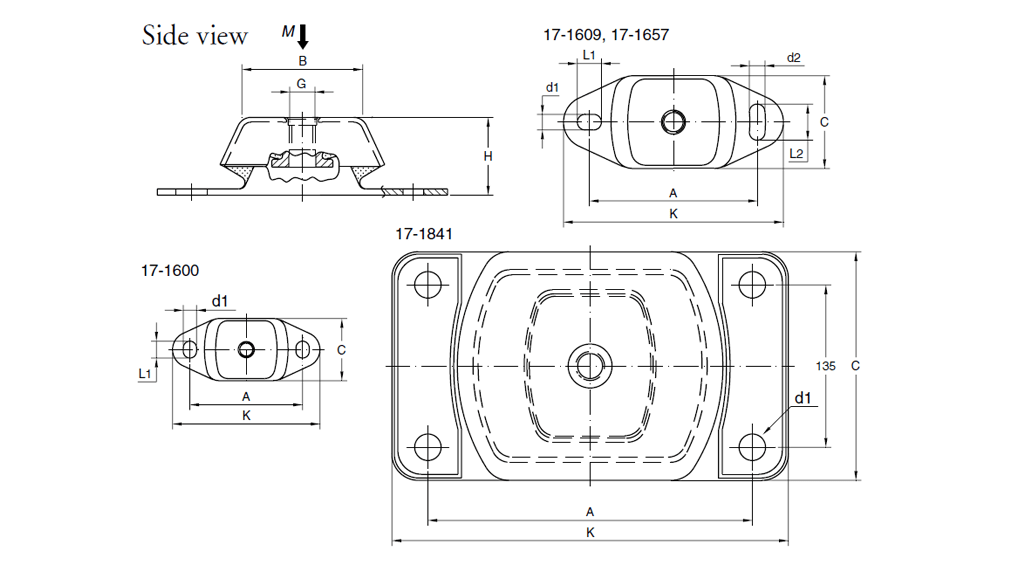 | 型号 | 产品号 | B | C | A | K | H | d1 | L1 | d2 | L2 | G | kg | (kg) | (kg) | 力,F (N) |