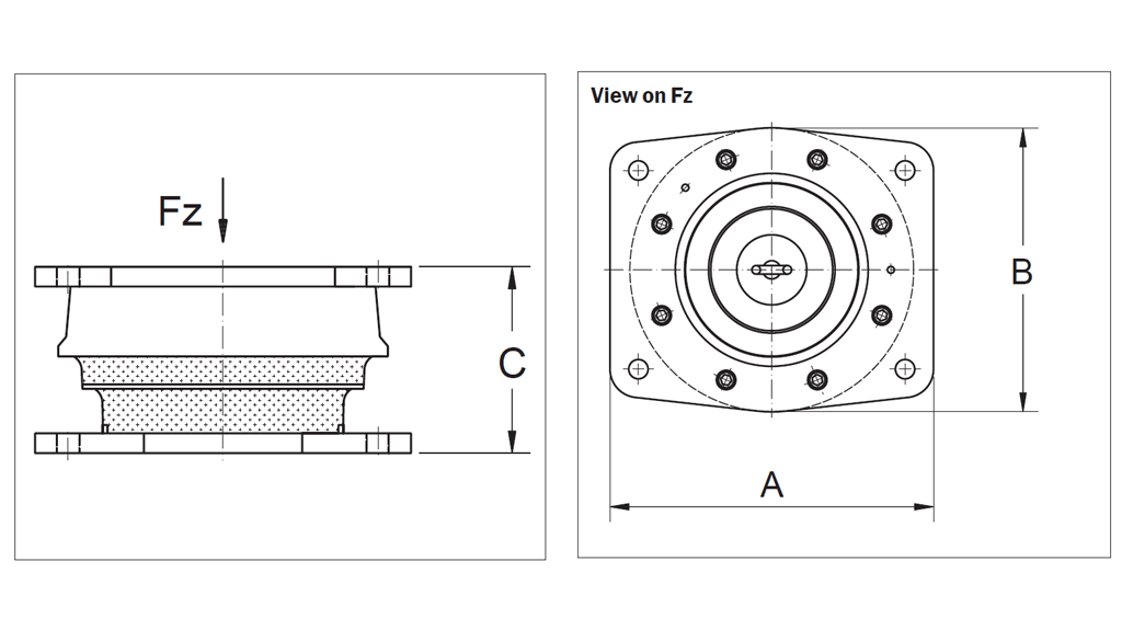 橡胶硬度 | 载荷 Fz kN | 静刚度 kN/mm |