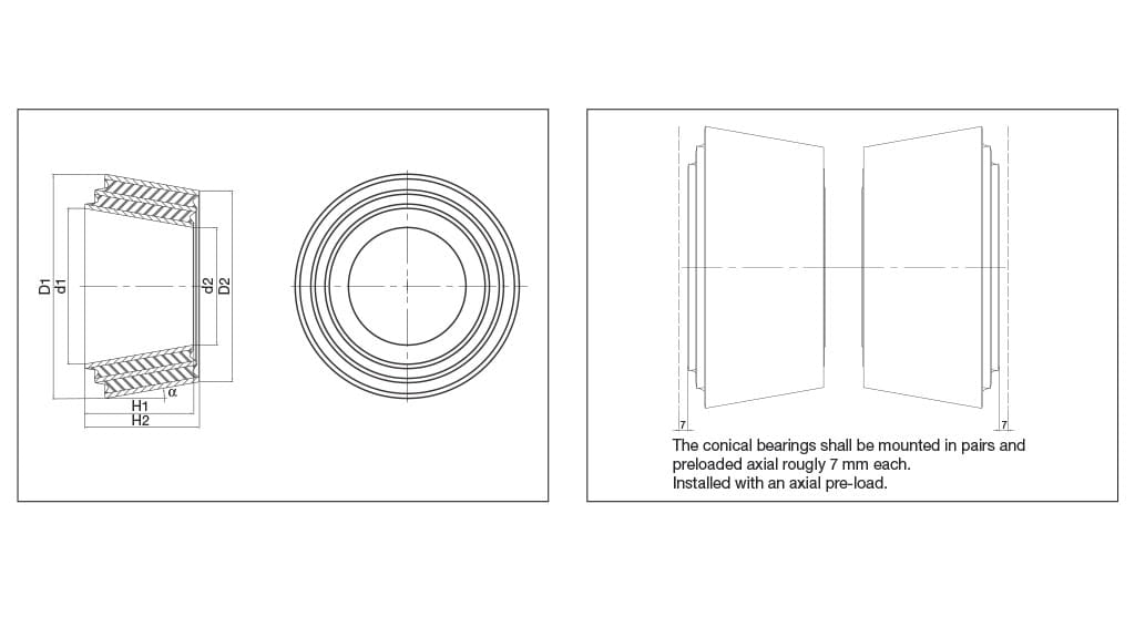 锥形衬套通常成对使用来传递径向和轴向载荷,同时允许较大的扭转运动和一定的锥形运动。锥形衬套因其独特性质,适用于具备弹性控制的大位移悬置系统。