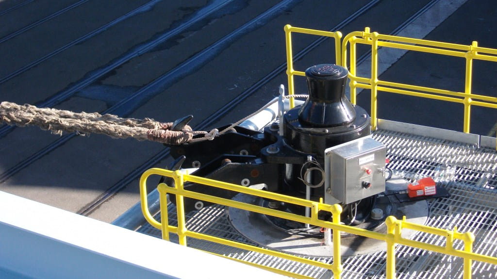 两条缆绳可共用同一个系船柱(取决于系船柱的承载能力)