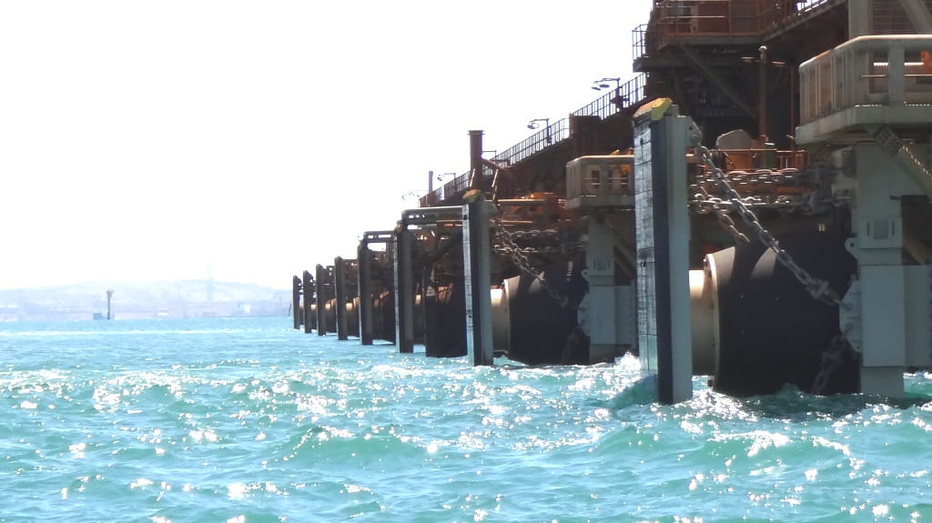 超高分子量聚乙烯(UHMWPE) 抗磨垫通过螺栓安装到2个可拆卸式不锈钢板上,这与通过螺栓紧固装置将UHMWPE抗磨垫直接组装至固定式防冲板上的传统橡胶护舷系统有所不同。这些板件之后将嵌入到固定式防冲板正面的导轨中。可在两小时内轻松将防冲板从正面框架中取出,并重新嵌入更换件,从而减少停泊停工时间,确保作业如期进行。