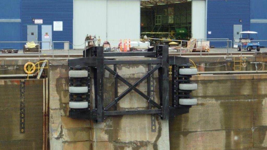 轮式护舷 广泛用于具有外露角的船舶环境,有助于船舶进入泊位以及船闸、干船坞入口等狭窄过道。