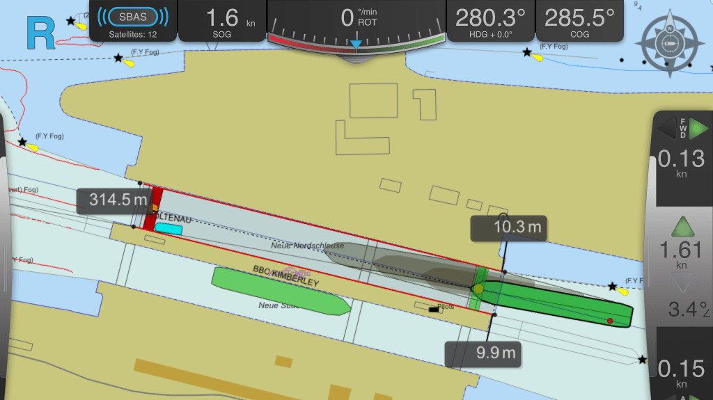 在引航员(通过SafePilot App)与岸侧SafePilot客户端之间分配实时位置数据,并提供预测路径