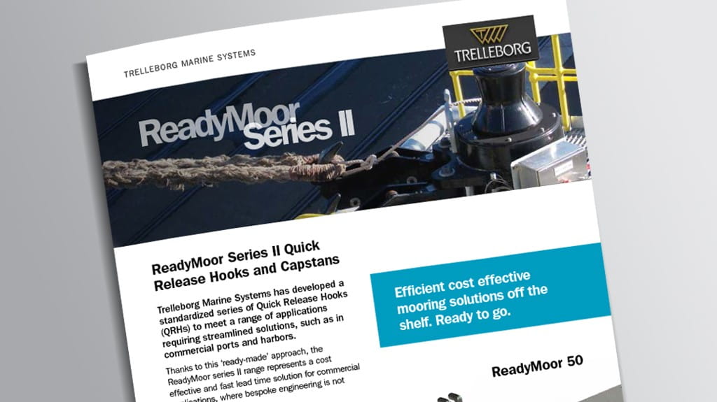 特瑞堡开发的 ReadyMoor快速脱缆钩是专为商业港口而设计的一种标准化的快速脱缆钩产品,可作为系船柱的替代选择,同时又能以较低的成本提升系泊操作的安全和效率。